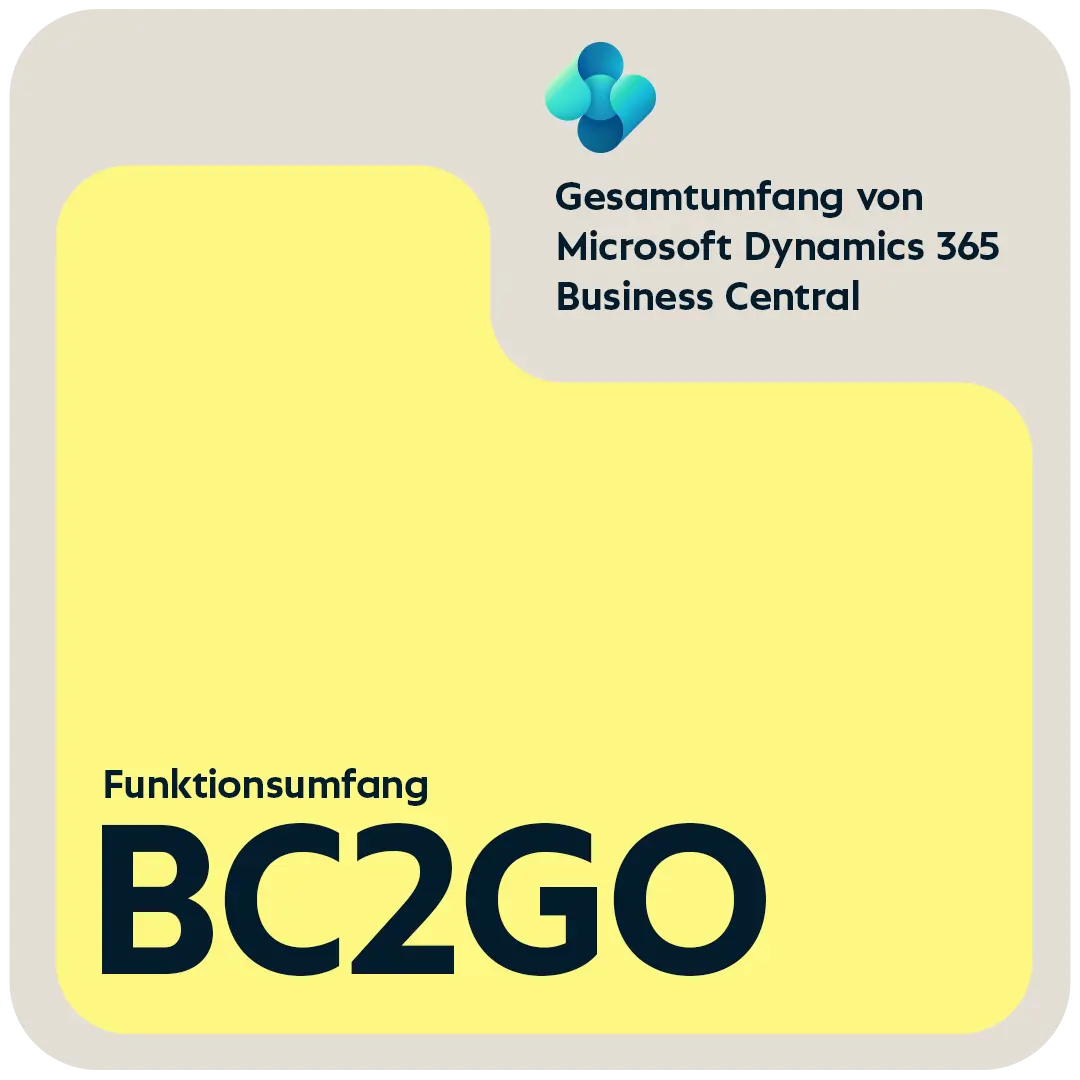 BC2GO is a comprehensive, state-of-the-art ERP solution that comes ready for immediate use. It is based on Microsoft Dynamics 365 Business Central and runs entirely in the cloud. This gives you a central software solution to manage all important areas of your company: from accounting and purchasing to sales and warehousing. BC2GO offers quick setup, simple operation, and predictable monthly costs. This is perfect for companies that want to go digital in the easiest way possible.